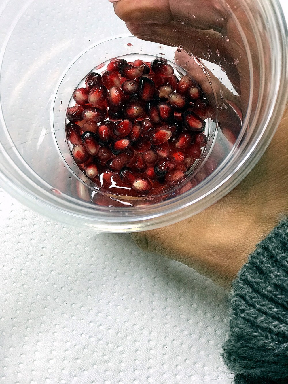 This yogurt cup has strawberries, raspberries, blueberries, raisins and nuts. I also added pomegranate seeds. This makes a great combination and is berry delicious.