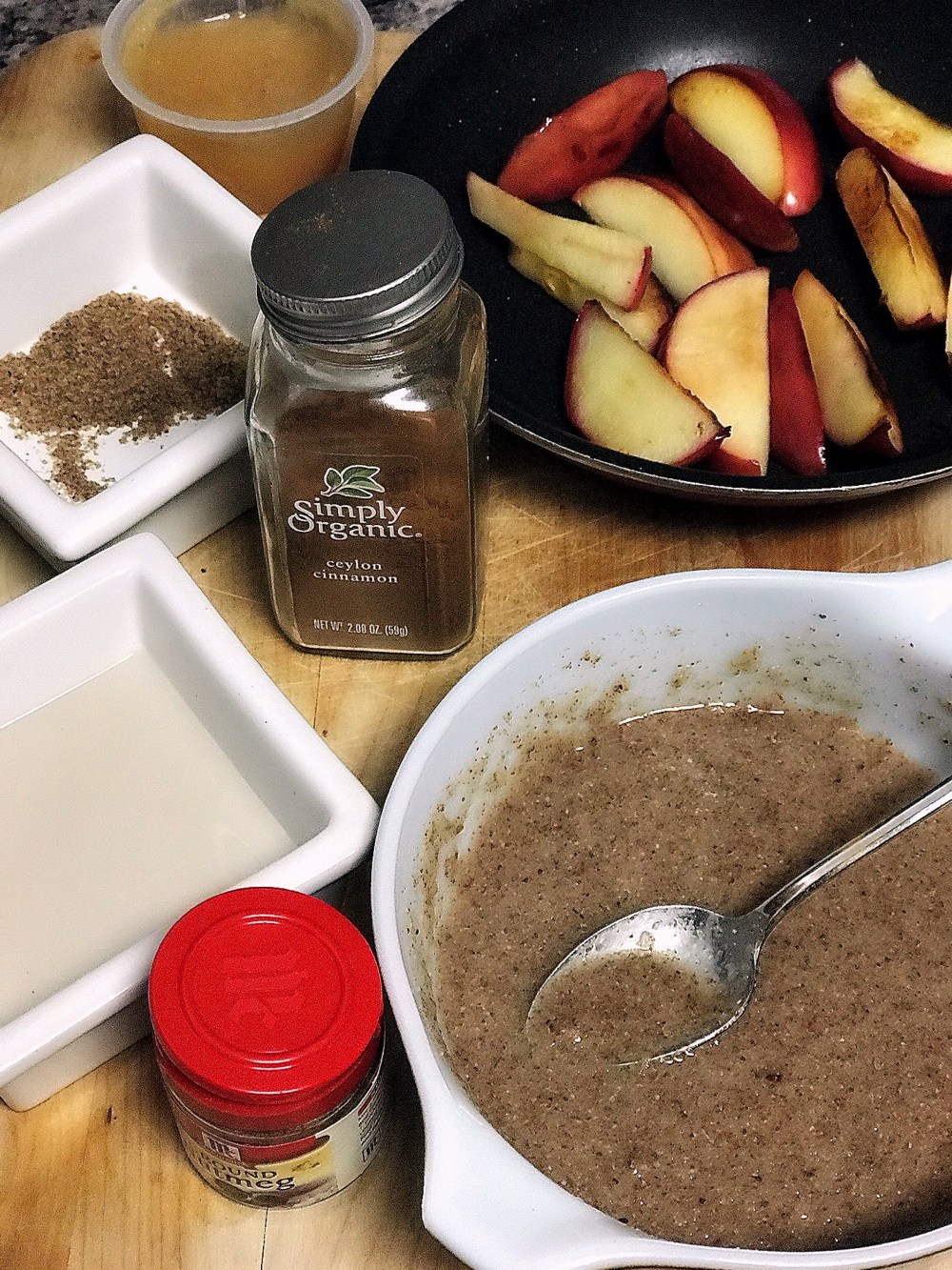 - Remove from pan and add apples. Top with crushed almonds. Drizzle almond butter and maple syrup to taste.
